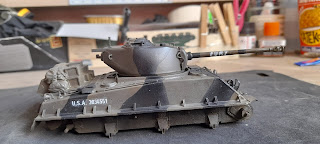 Al final en el Fury ... me fijé que el mantelete no era igual así que de otro sherman que tenía lo cambié y el color base me pareció muy claro ..use otro tono